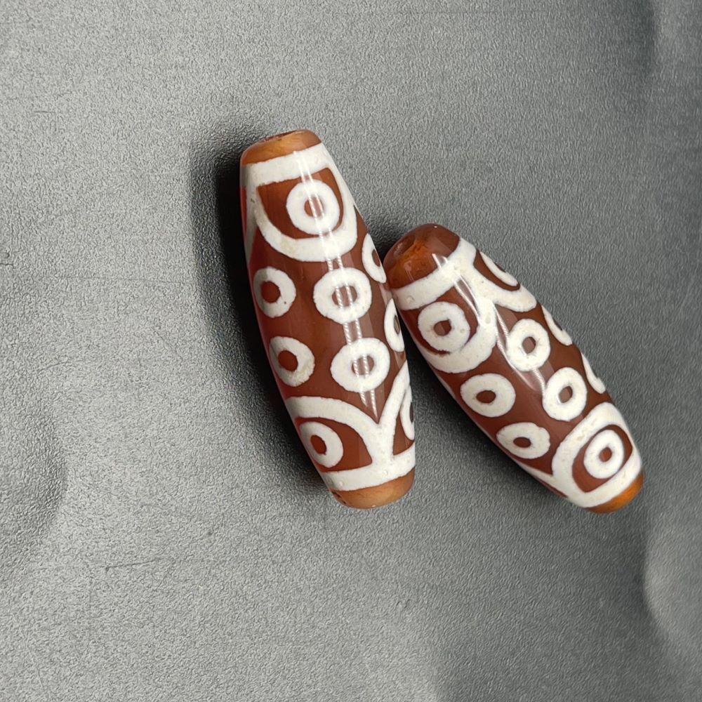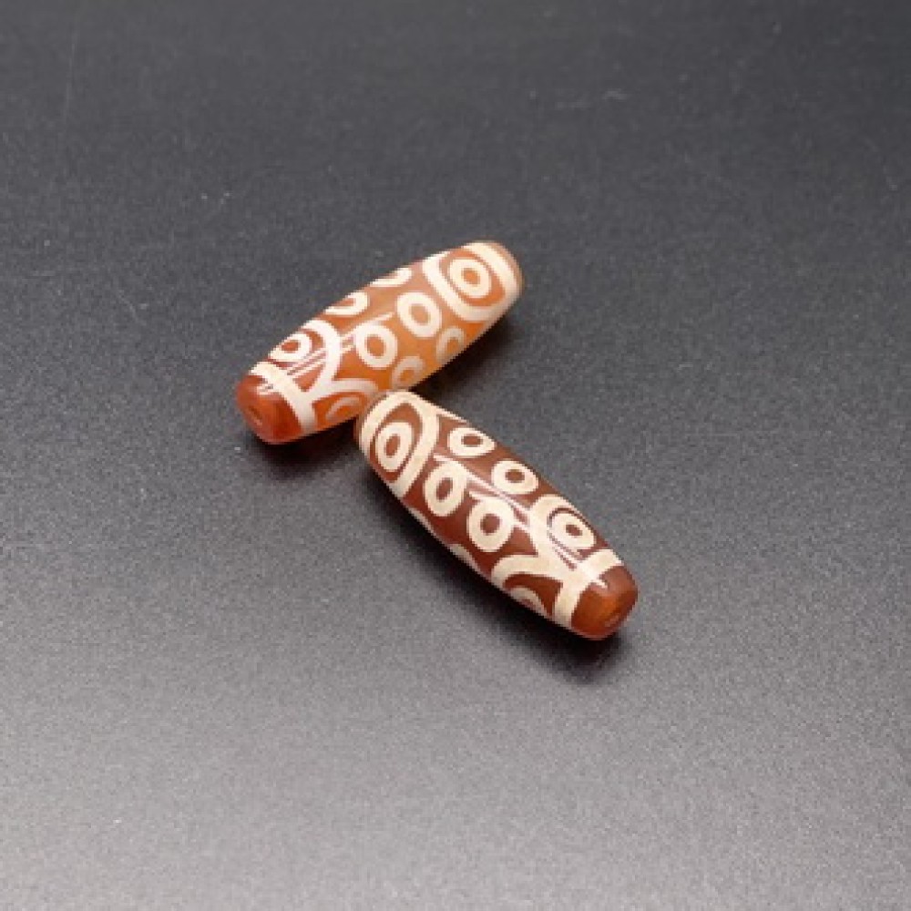 Бусина Дзи "91" из сердолика, 18 глаз, размер 30 х 10 мм