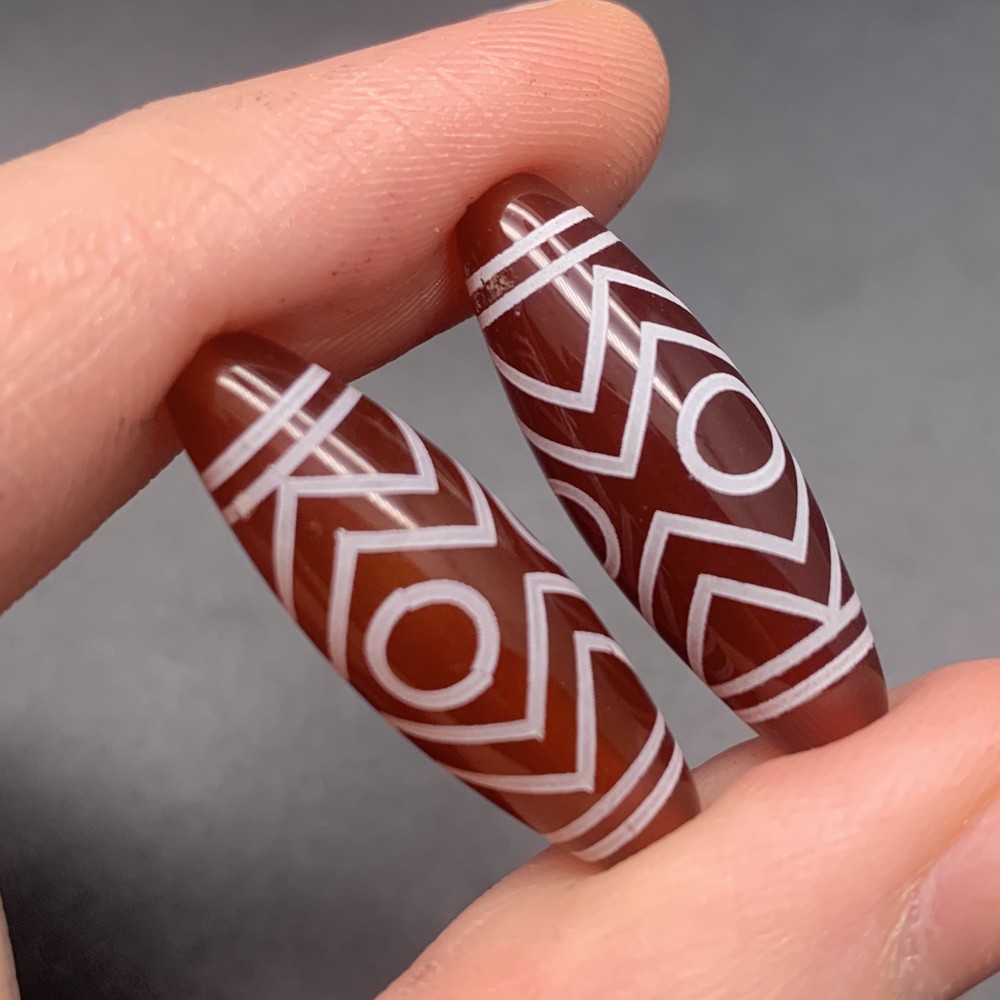Бусина Дзи "135" из сердолика, 3 глаза + клык, размер 30х10 мм, цена за 1 шт