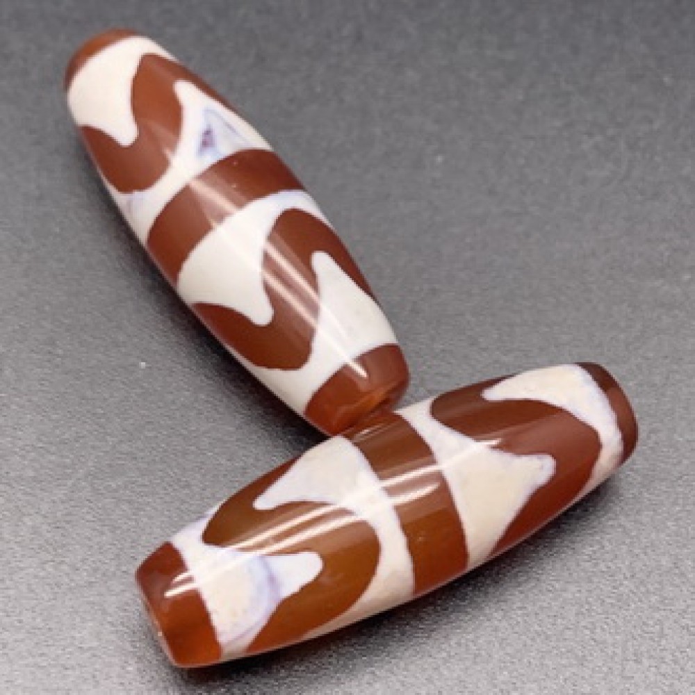 Бусина Дзи "134" из сердолика, Двойной тигриный клык, размер 30х10 мм, цена за 1 шт