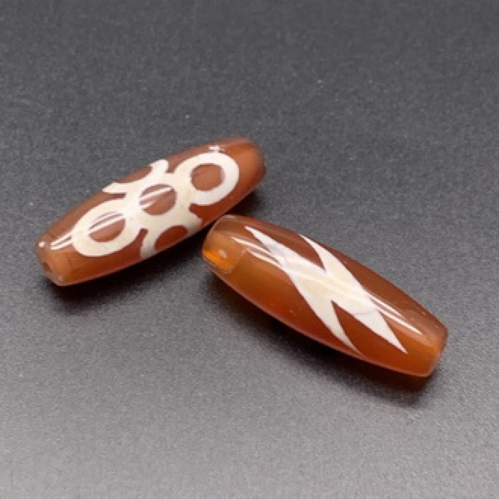 Бусина Дзи "88" из сердолика, Гаруда, Молния, размер 30 х 10 мм, цена за 1 шт.