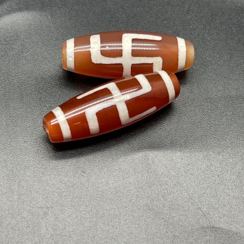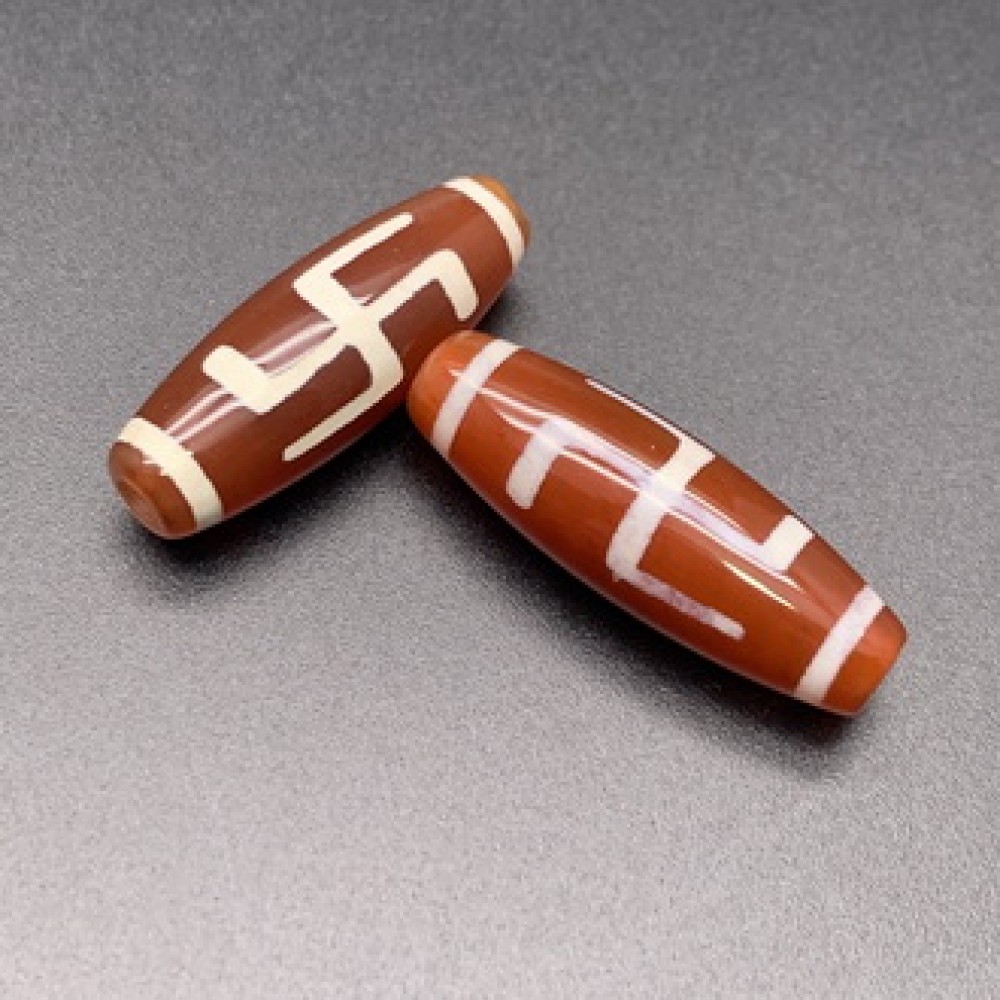 Бусина Дзи "89" из сердолика, свастика, Хо-ту-Дзи, размер 30 х 10 мм, 1 шт