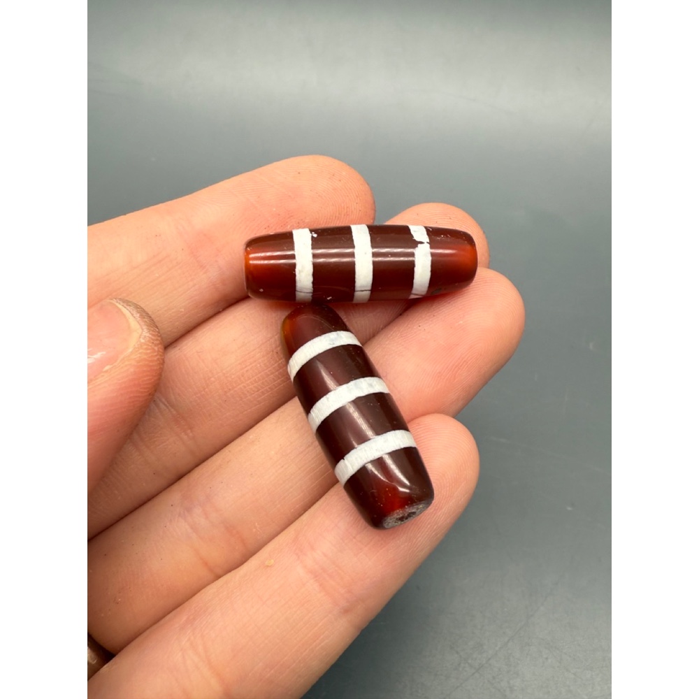 Бусина Дзи "123" из сердолика, три полоски желания, размер 30х10 мм, цена за 1 шт