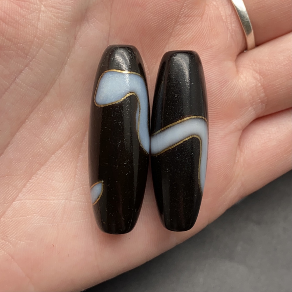 • Бусина Дзи "283", Змея, из агата, с инкрустацией золота, 38х12 мм, цена за 1 шт