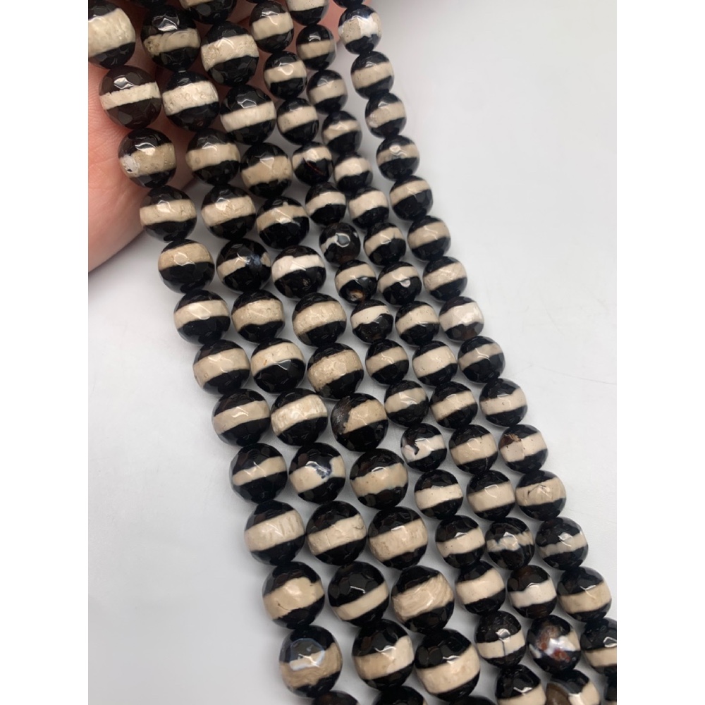 Каменные бусины, Дзи медицины (здоровья), Агат чёрный, глянцевый, шарик огранка, 7,5-8 мм, длина нити 38 см
