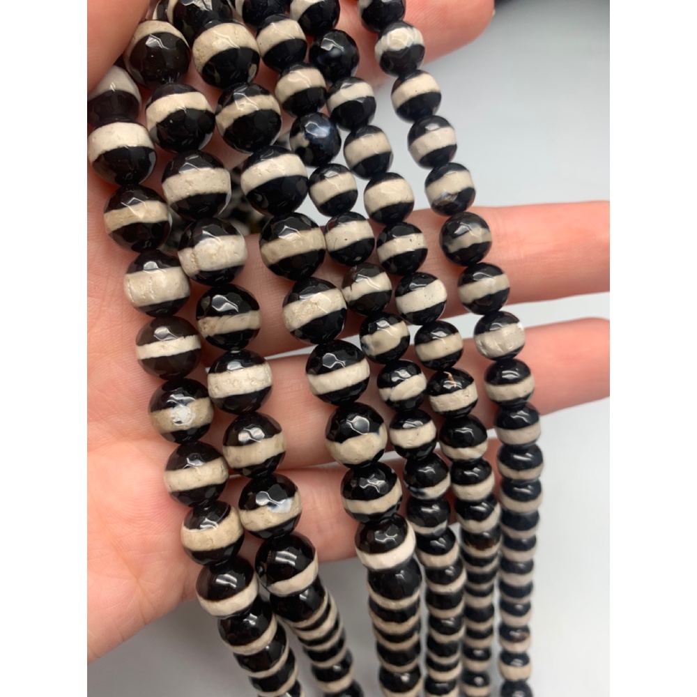 Каменные бусины, Дзи медицины (здоровья), Агат чёрный, глянцевый, шарик огранка, 9,5-10 мм, длина нити 38 см