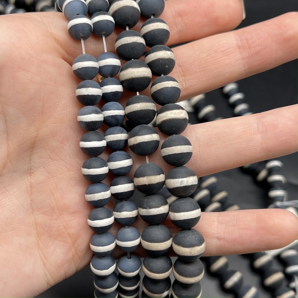 • Каменные бусины, Дзи медицины (здоровья), Агат чёрный, прессованный, шарик гладкий, 12 мм, длина нити 38 см