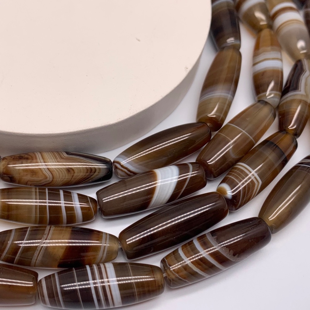 Каменные бусины, Дзи природные, Агат коричневый с полосками, люкс, 29х10 мм, 13 штук на нити