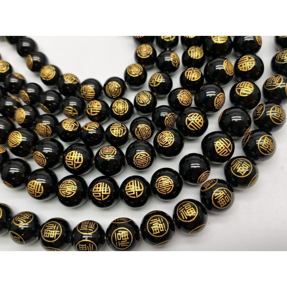 Каменные бусины, Мантры, Благословение (Счастье, долголетие, успех, благополучие), Агат, чёрный, 8 мм, длина нити 38 см