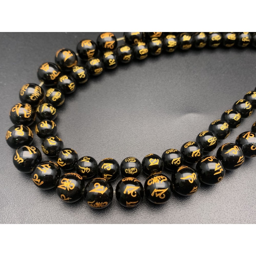 Теги: Каменные бусины, Мантры из агата, (любовь, счастье, здоровье, успех, богатство), 10 мм, длина 38 см, 11304, Бусины гладкие