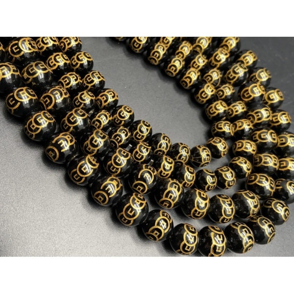 Каменные бусины, Мантры, китайские монеты (символ богатства), Агат, чёрный, 10 мм, длина нити 38 см