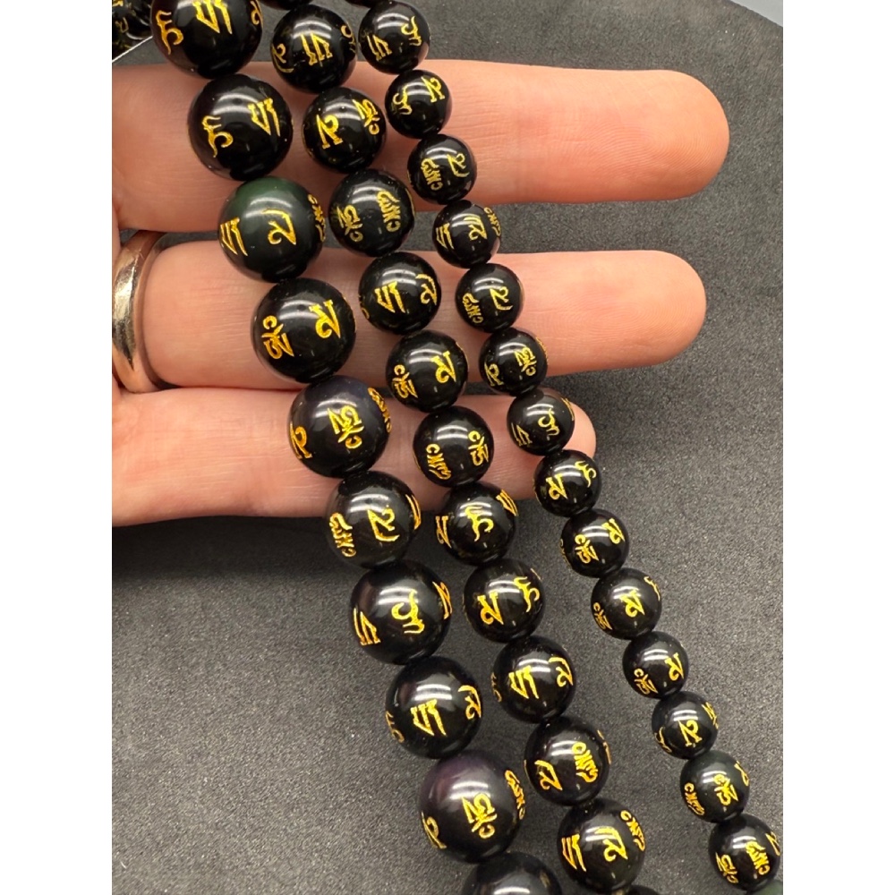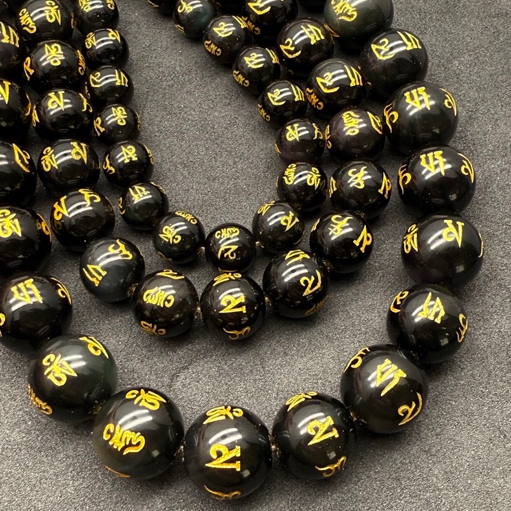 Каменные бусины, Обсидиан радужный, Мантры, (Любовь, счастье, здоровье, успех, богатство), шарик гладкий, 12 мм, длина нити 19 см