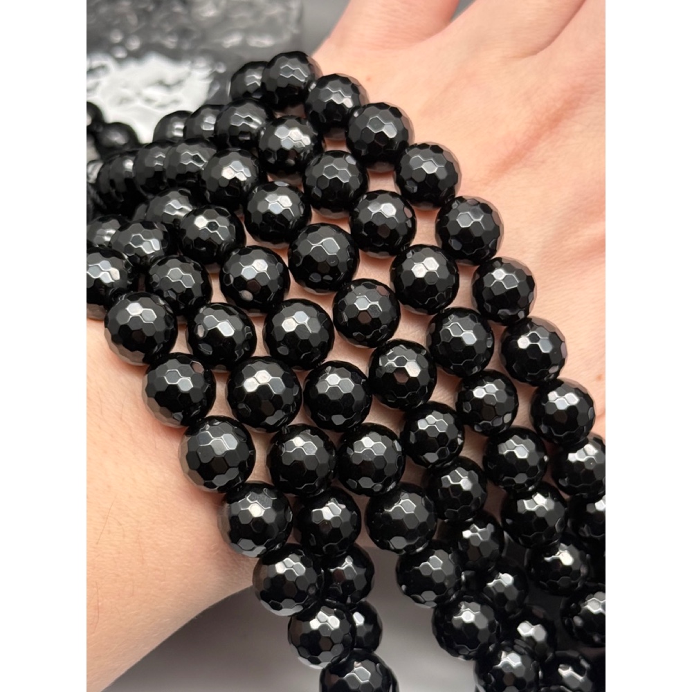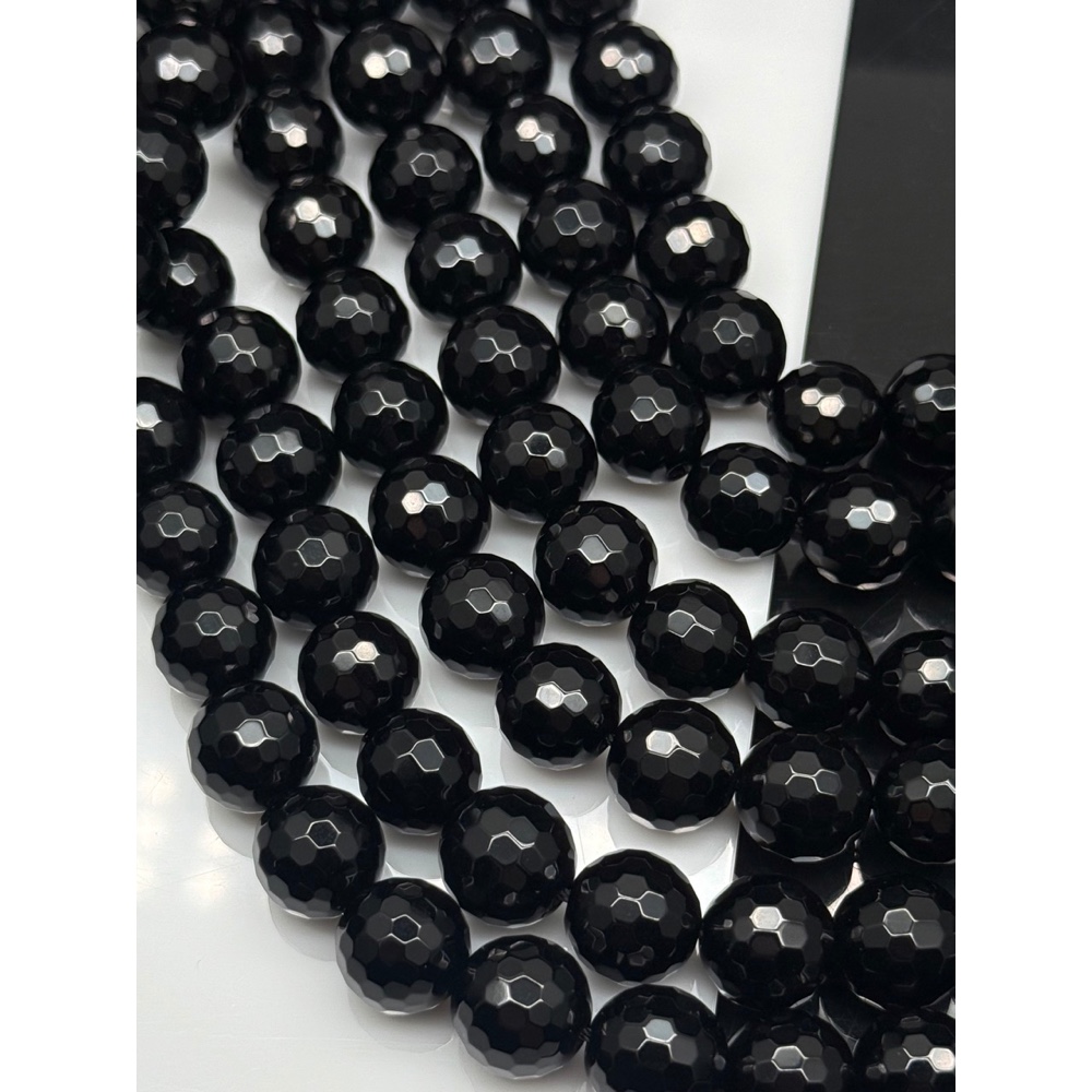 Теги: Каменные бусины, Агат, чёрный, шарик огранка, 12 мм, длина нити 38 см, 13254, Бусины в огранке