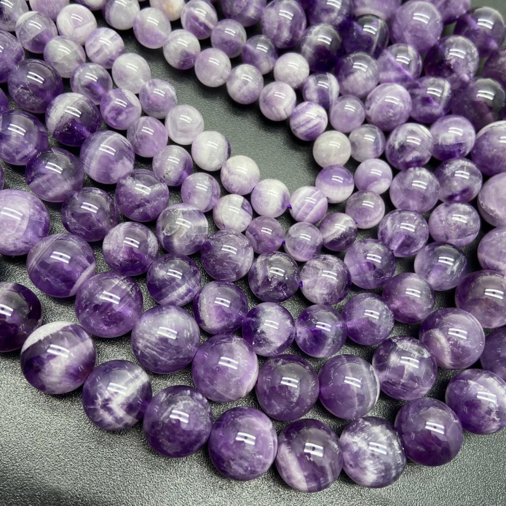 Каменные бусины, Аметист с полосками, 12 мм, шарик гладкий, длина нити 38 см
