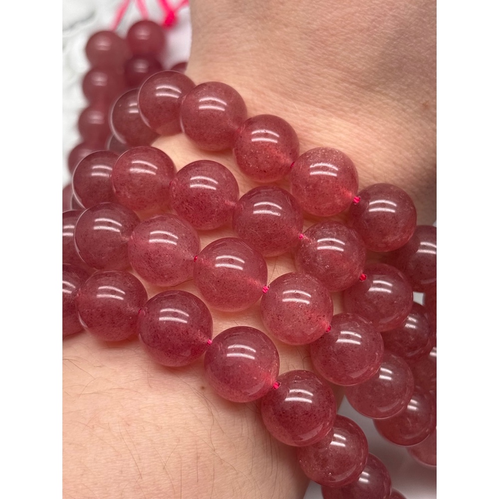 • Каменные бусины, Клубничный кварц, люкс, шарик гладкий, 12-12,5 мм, длина нити 19 см