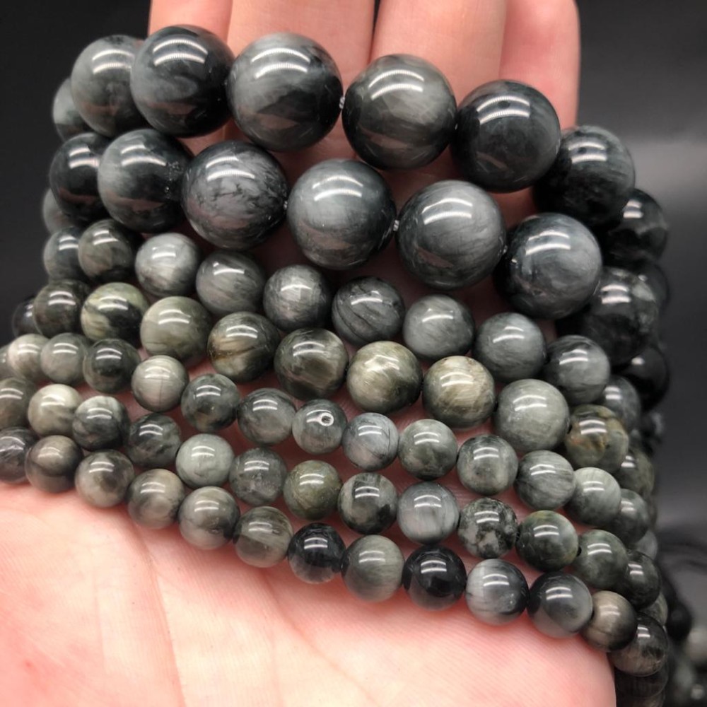 Каменные бусины, Кошачий глаз, (орлиный, соколиный), серый, люкс, шарик гладкий, 12 мм, длина нити 38 см 0 3260 ₽