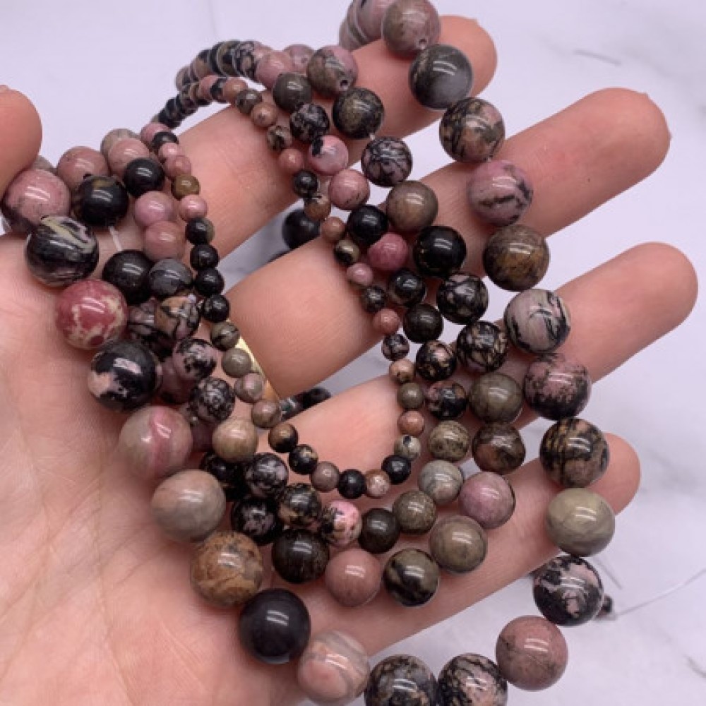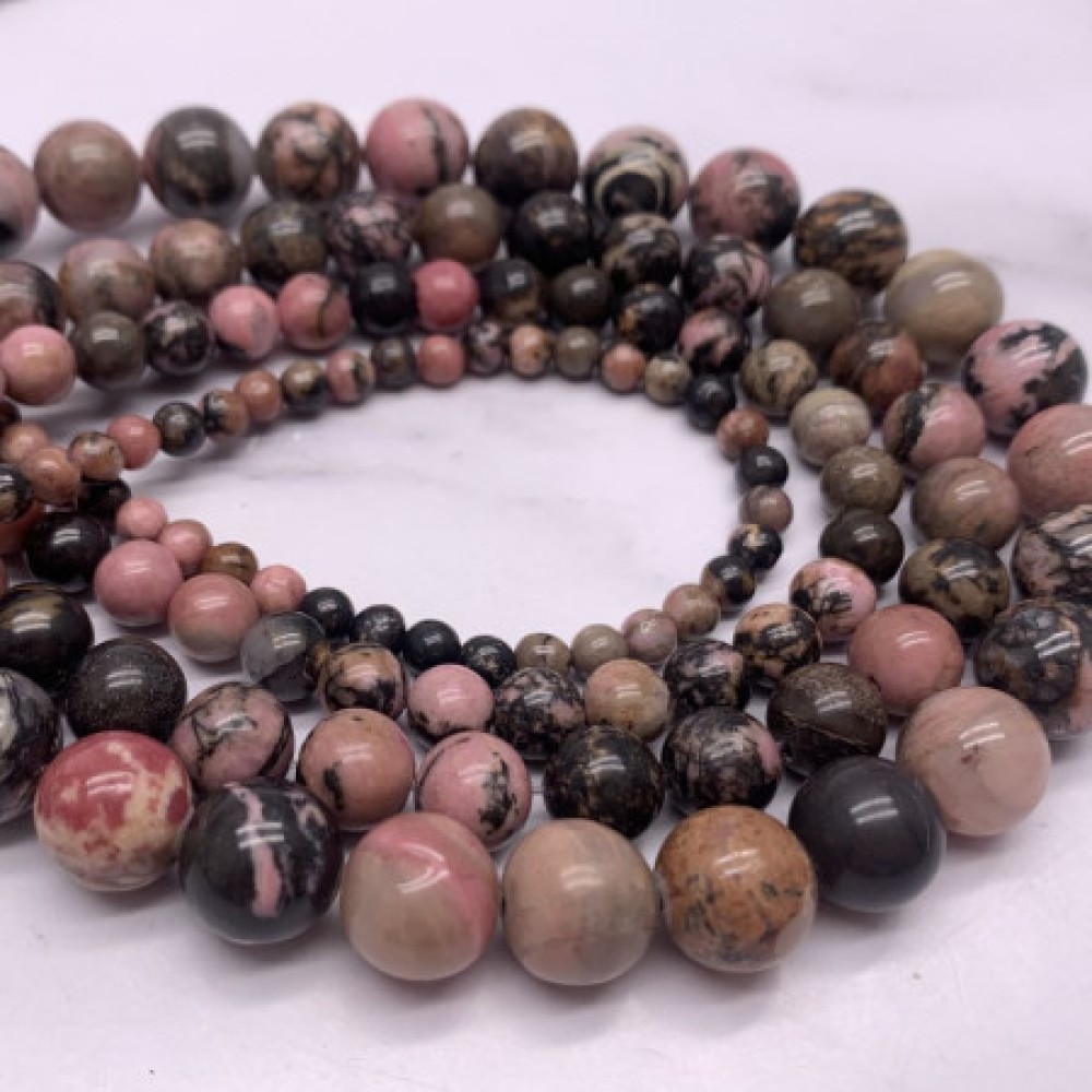 Каменные бусины, Родонит, Дендритовый, шарик гладкий, 12 мм, нить 37 см