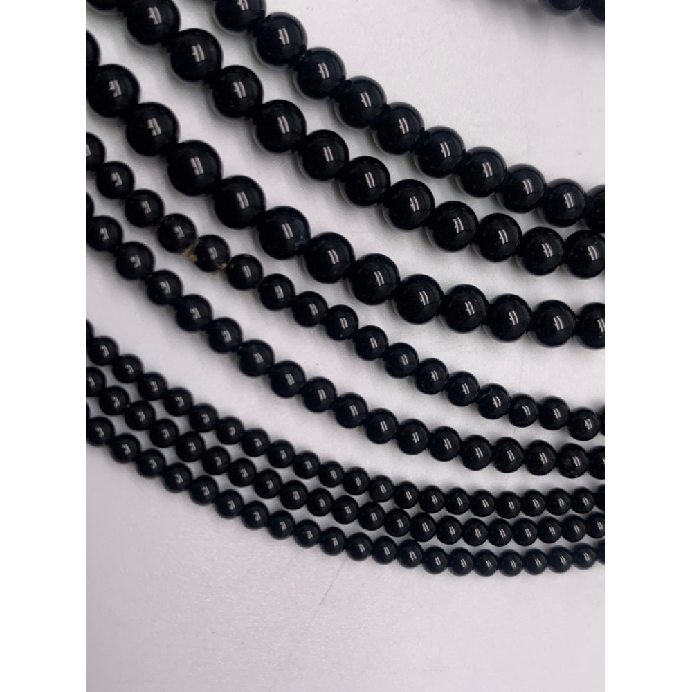 • Каменные бусины, Агат, чёрный, шарик гладкий, 3 мм, длина нити 38 см