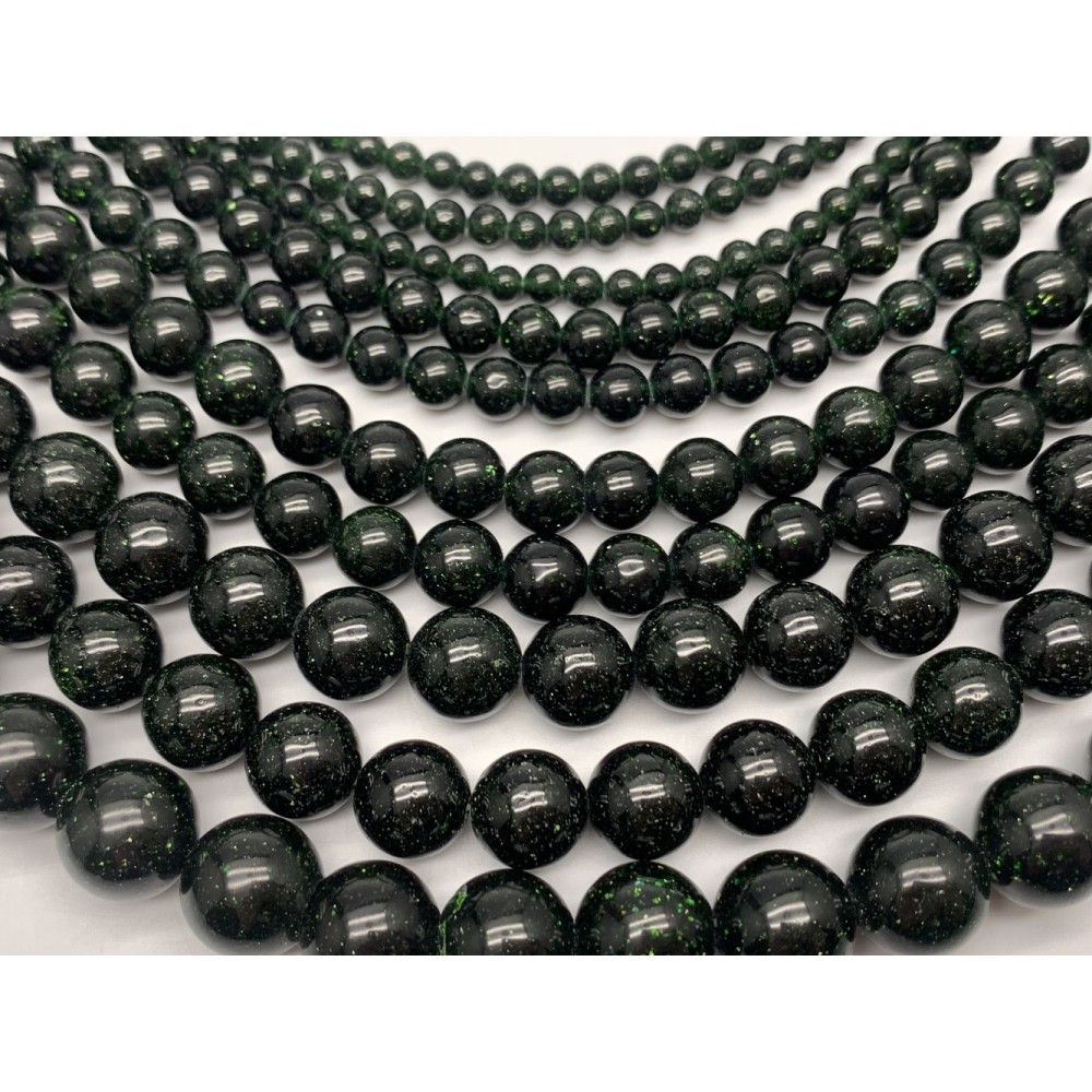 Теги: Каменные бусины, Авантюриновое стекло, цвет-зеленый, имитация, шарик гладкий, 3, 8-4 мм, длина нити 36 см, 17391, Бусины гладкие