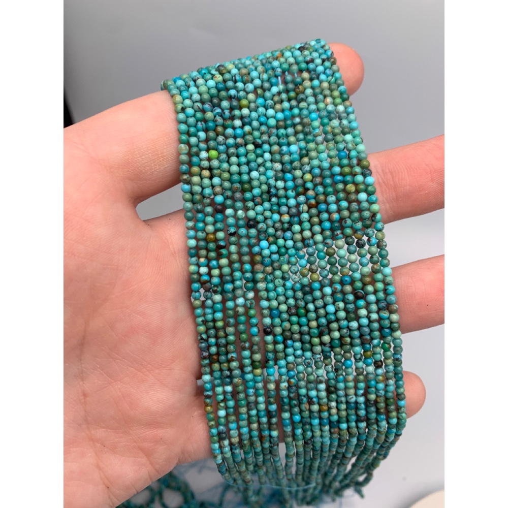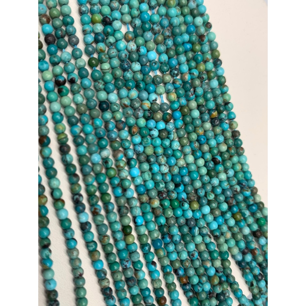 Каменные бусины, Бирюза стабилизированная, шарик гладкий, 2,2 мм, длина нити 38 см