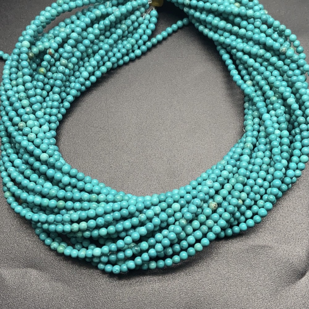 • Каменные бусины, Говлит, тонированный, голубо-зеленый, шарик гладкий, 3 мм, длина нити 38 см