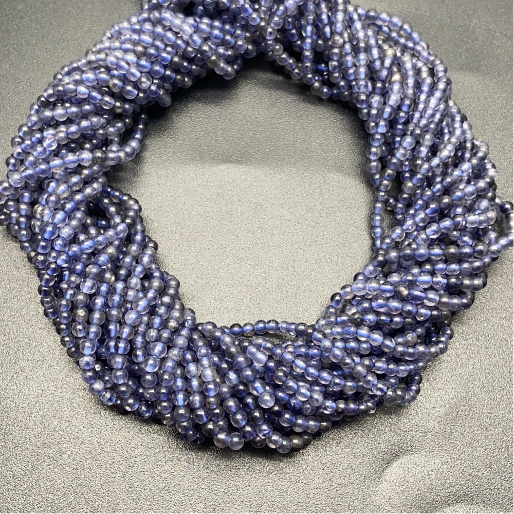 • Каменные бусины, Иолит (Водяной сапфир), шарик гладкий, 3 мм, длина нити 38 см