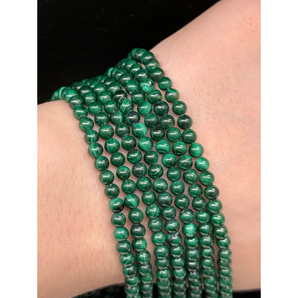 Каменные бусины, Малахит (Конго), люкс, шарик гладкий, 4 мм, длина нити 39 см