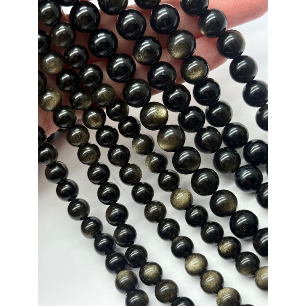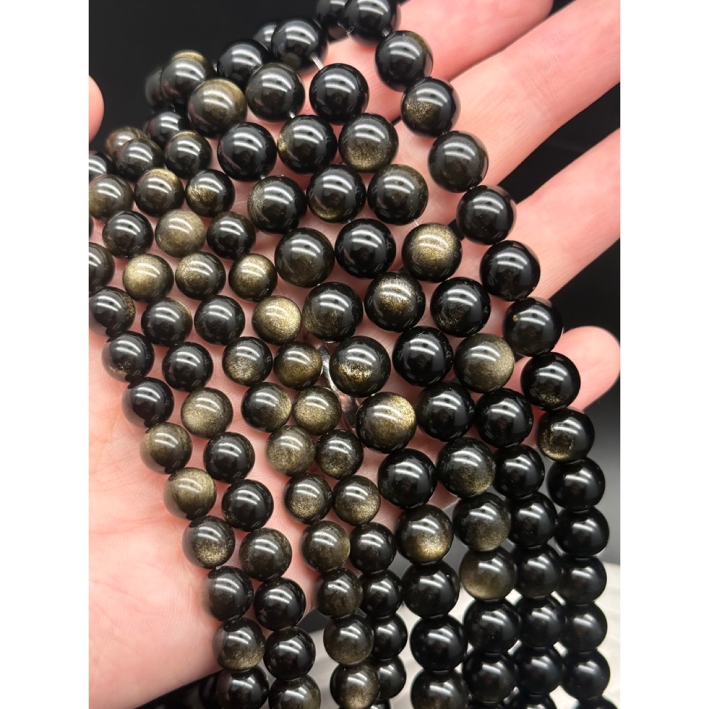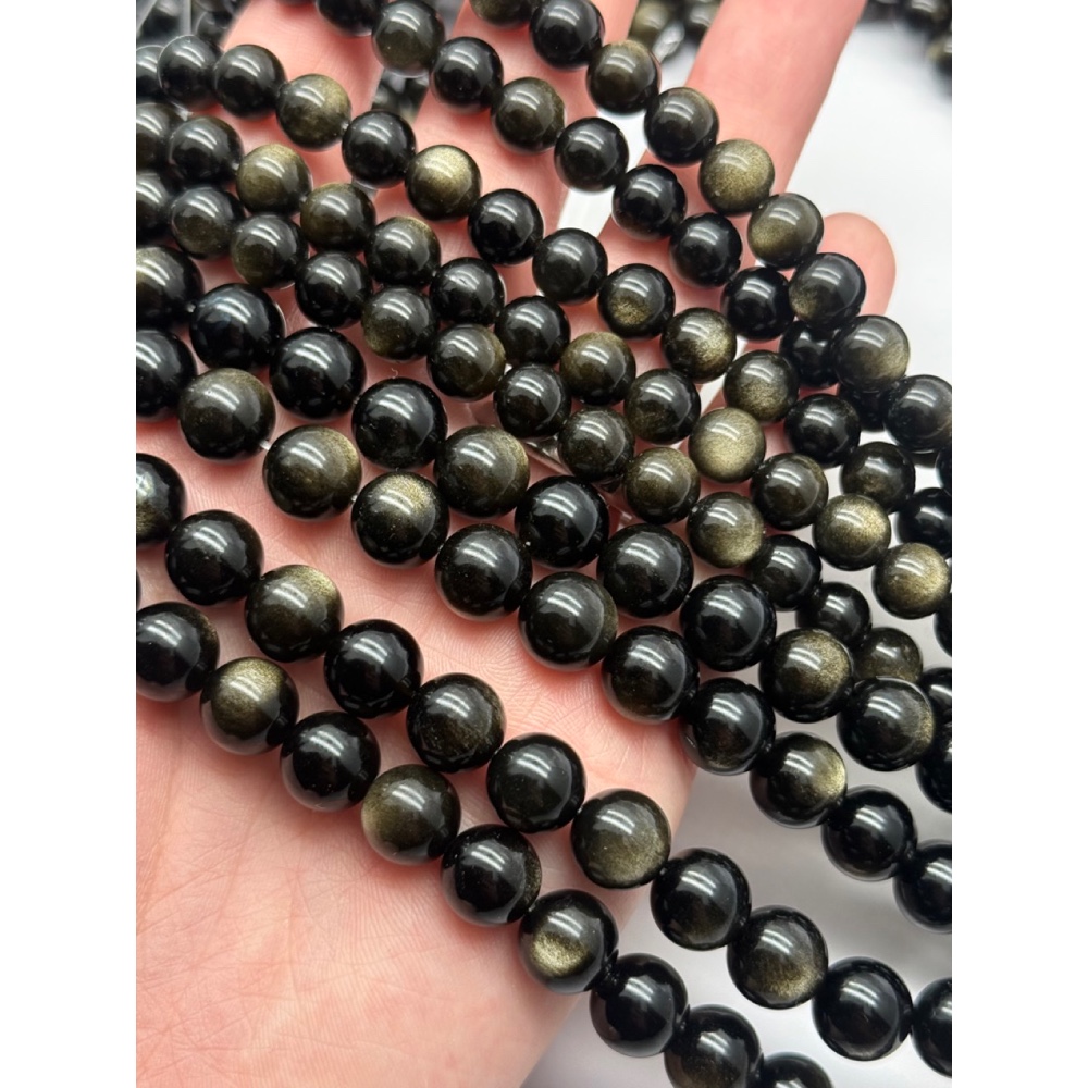 Теги: Каменные бусины, Обсидиан золотой, люкс, шарик гладкий, 10 мм, длина нити 38 см, 21395, Бусины гладкие