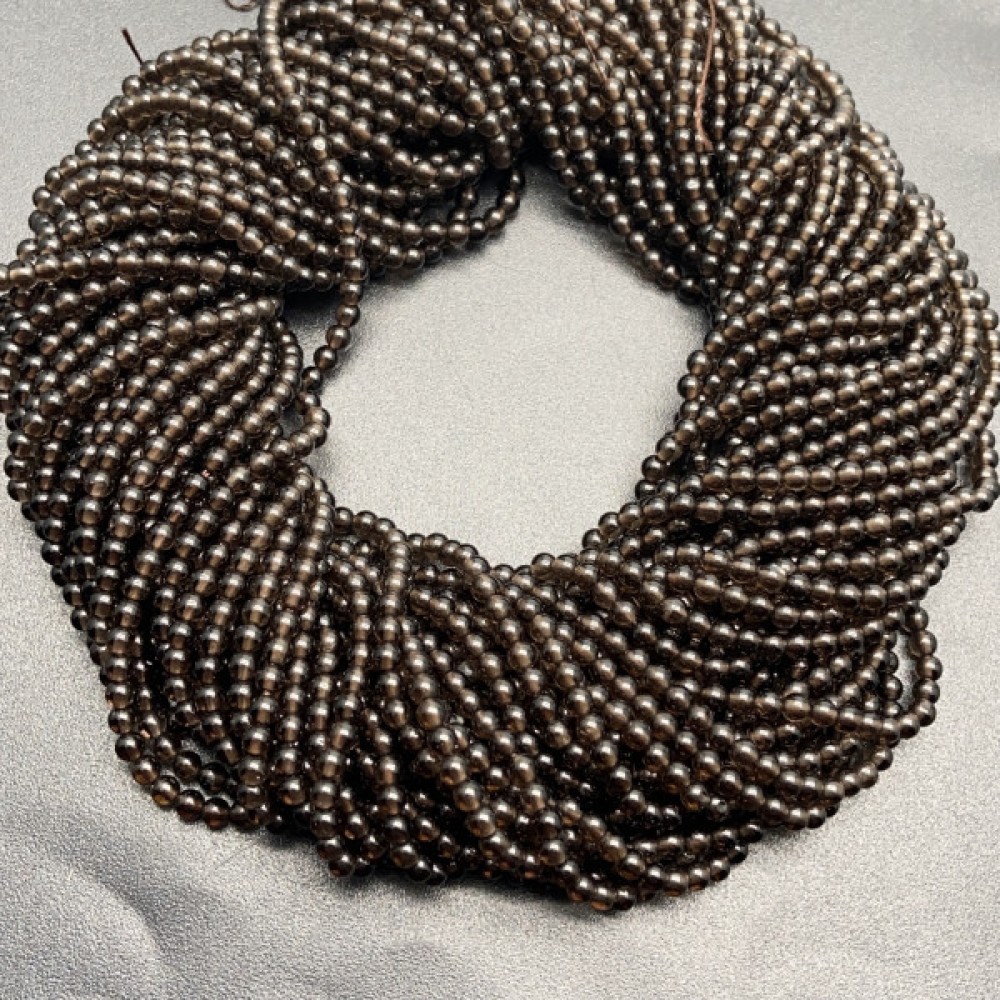 Каменные бусины, Раухтопаз, дымчатый кварц, шарик гладкий, размер 4-4,5 мм, длина нити 38 см