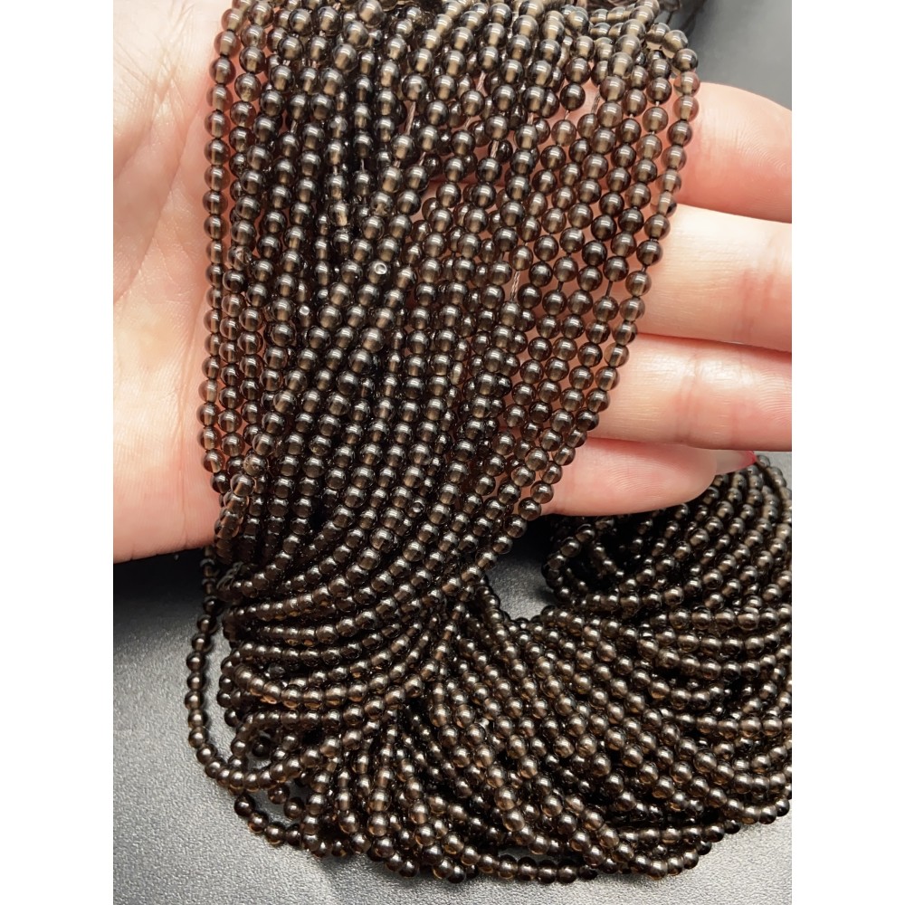 Каменные бусины, Раухтопаз, дымчатый кварц, шарик гладкий, размер 4 мм, длина нити 38 см