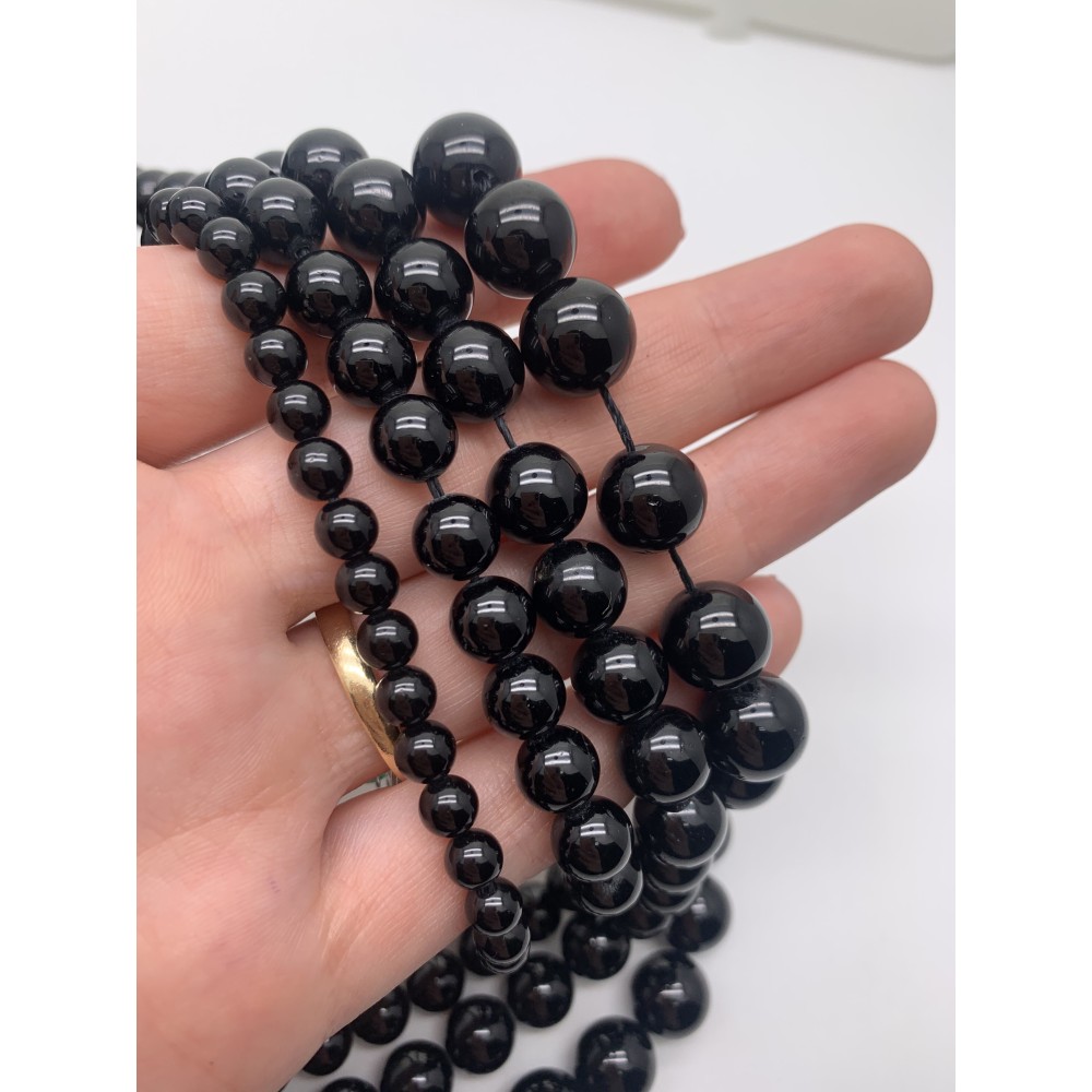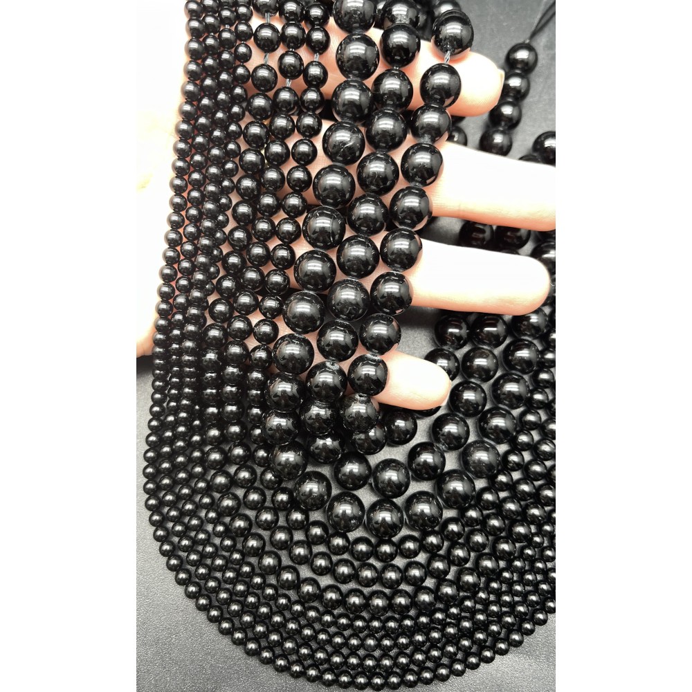 Теги: Каменные бусины, Турмалин, чёрный, Шерл, шарик гладкий, 4 мм, длина нити 38 см, 12685, Бусины гладкие
