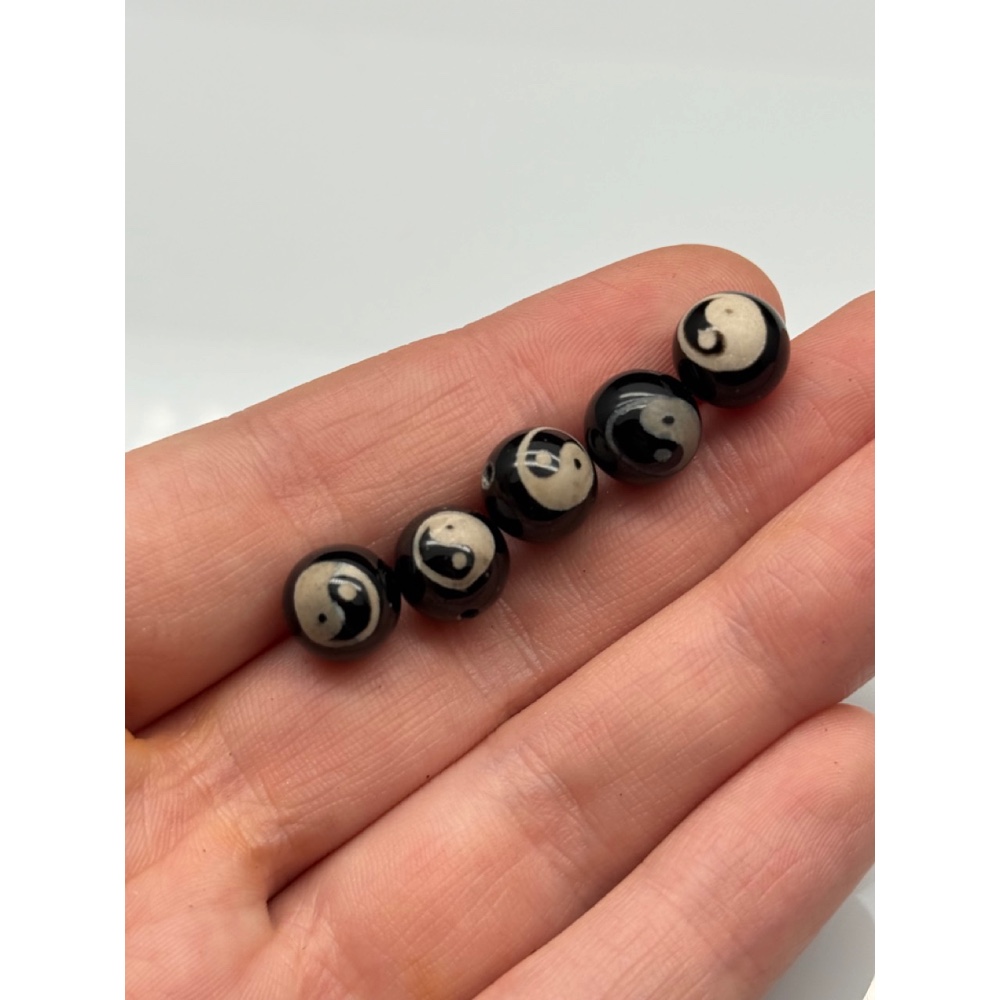 Теги: Бусина Дзи 202, агат, Инь-янь, размер 10 мм, цена за 5 шт, 10902, Бусины гладкие