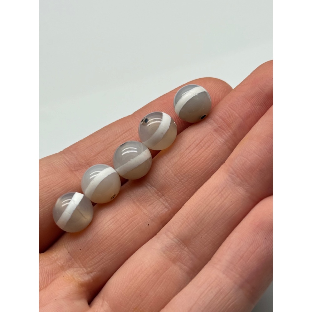 Бусина Дзи "205", Дзи медицины (здоровья), агат, халцедон светлый, размер 10 мм, цена за 5 шт