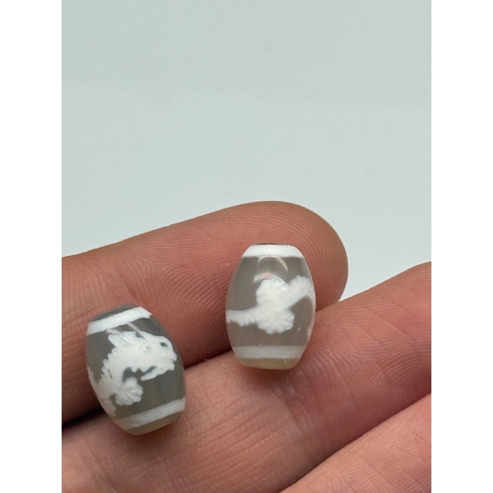 Бусина Дзи "207", Дракон, агат, халцедон светлый, размер 14х10 мм, цена за 1 шт
