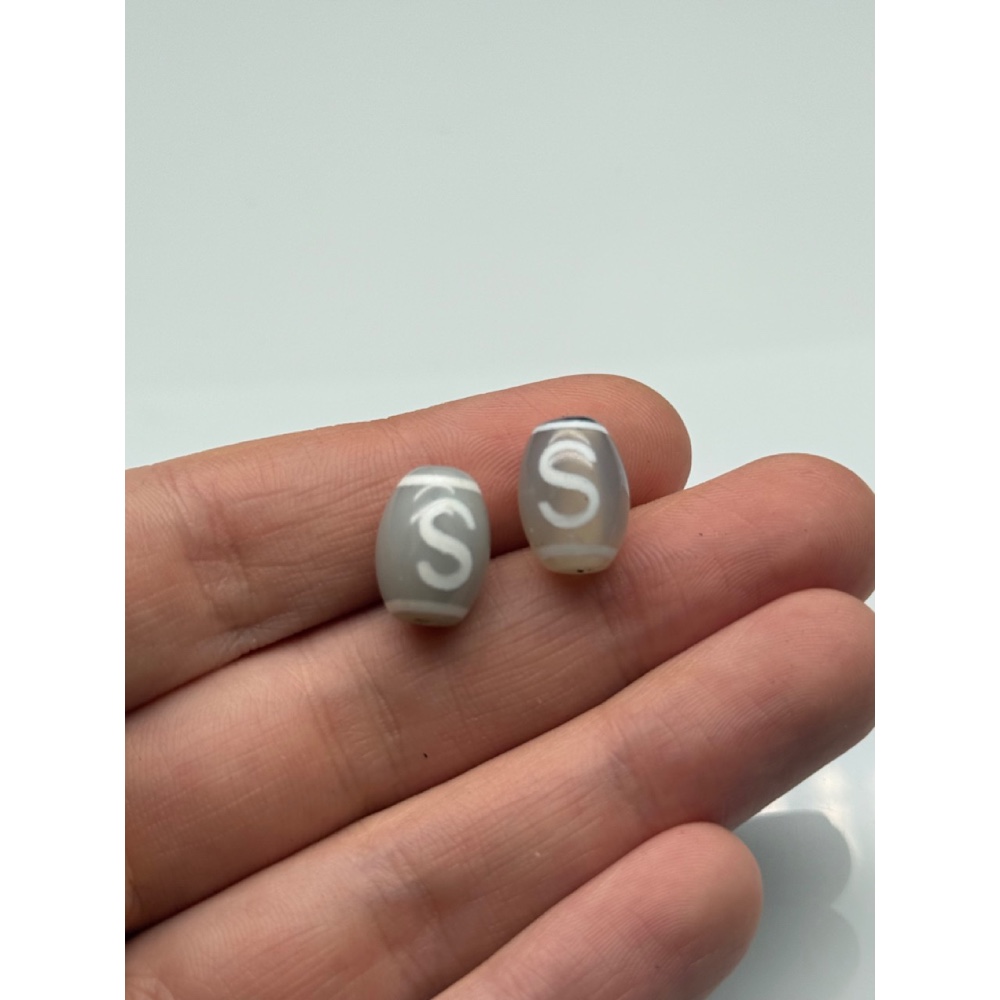 Бусина Дзи "208", Денежный крючок, агат, халцедон светлый, размер 14х10 мм, цена за 1 шт 0 50 ₽