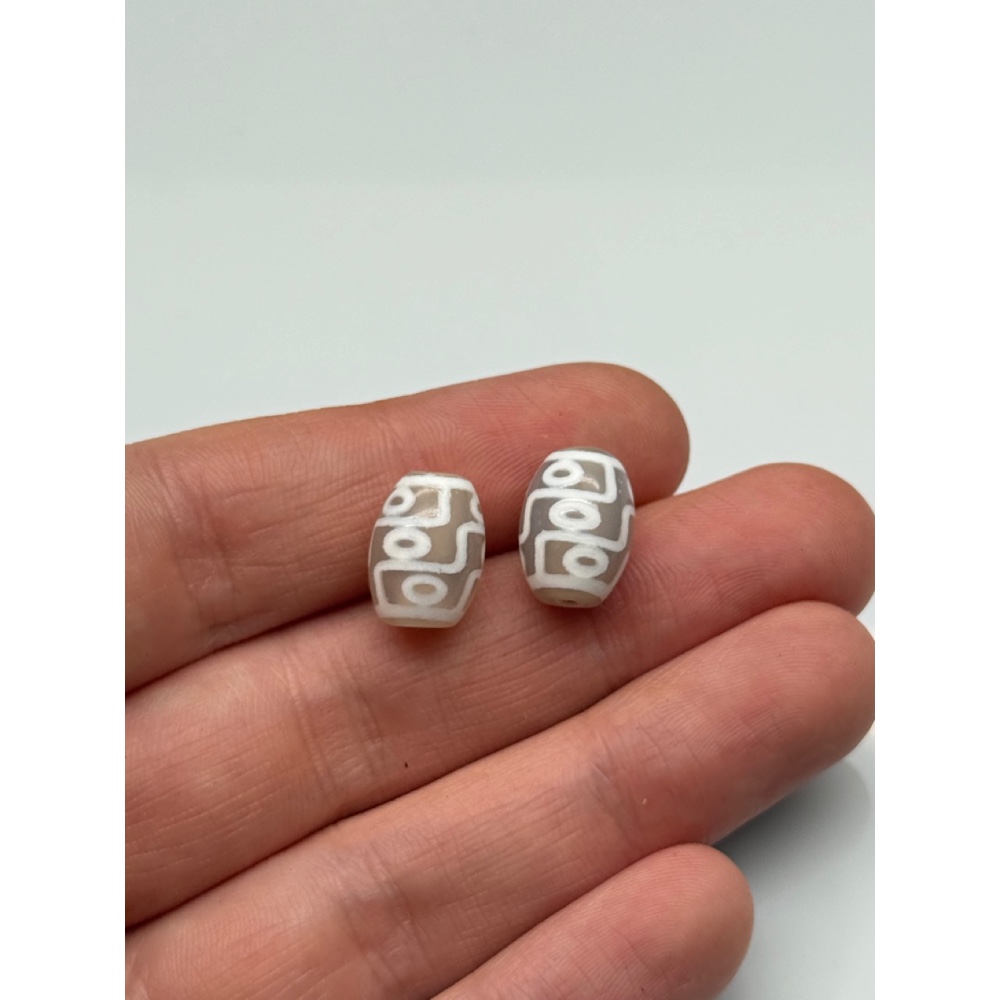 Бусина Дзи "209", 9 глаз, агат, халцедон светлый, размер 14х10 мм, цена за 1 шт