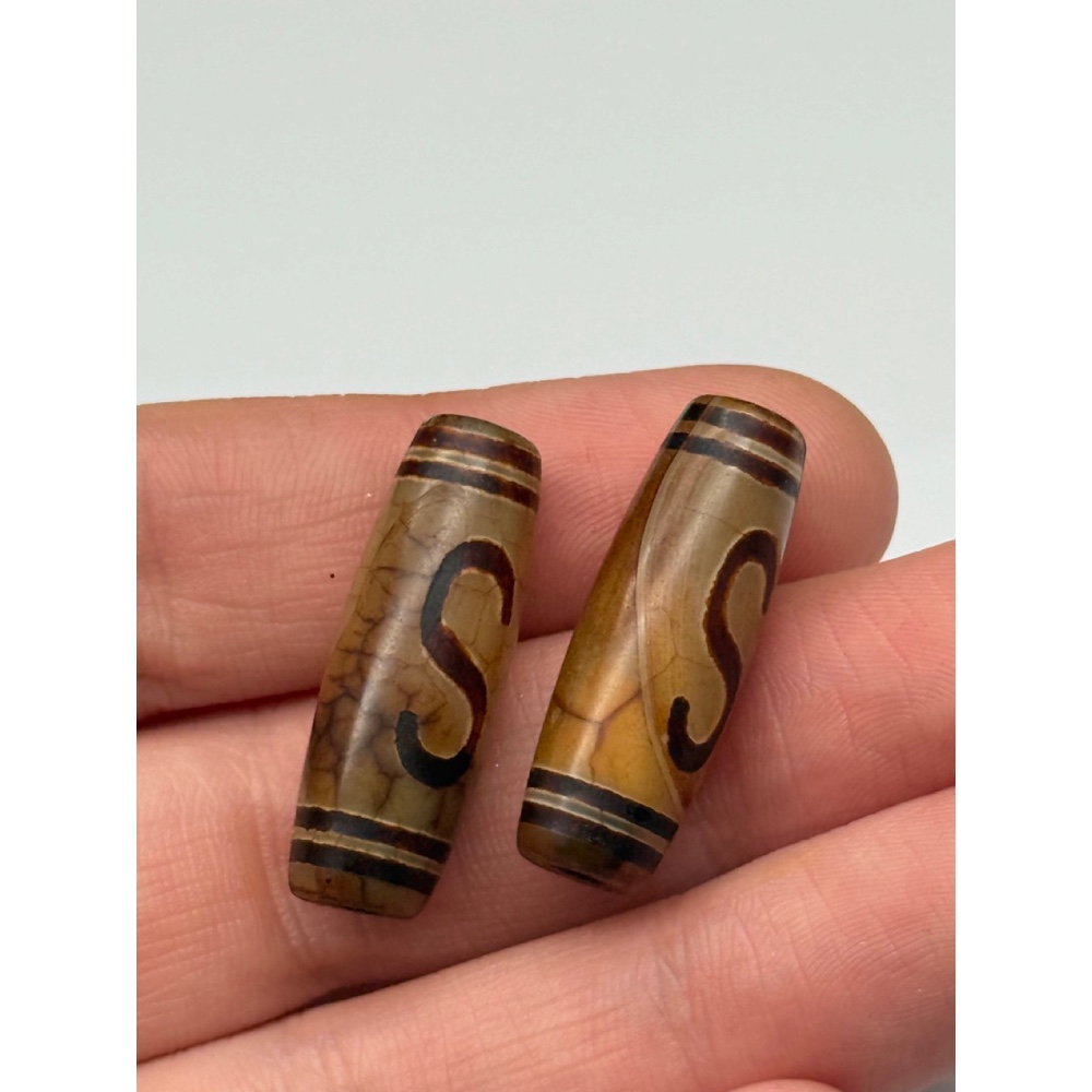 Бусина Дзи "216", Денежный крючок, Агат, кракле, 30х10 мм, цена за 1 шт.