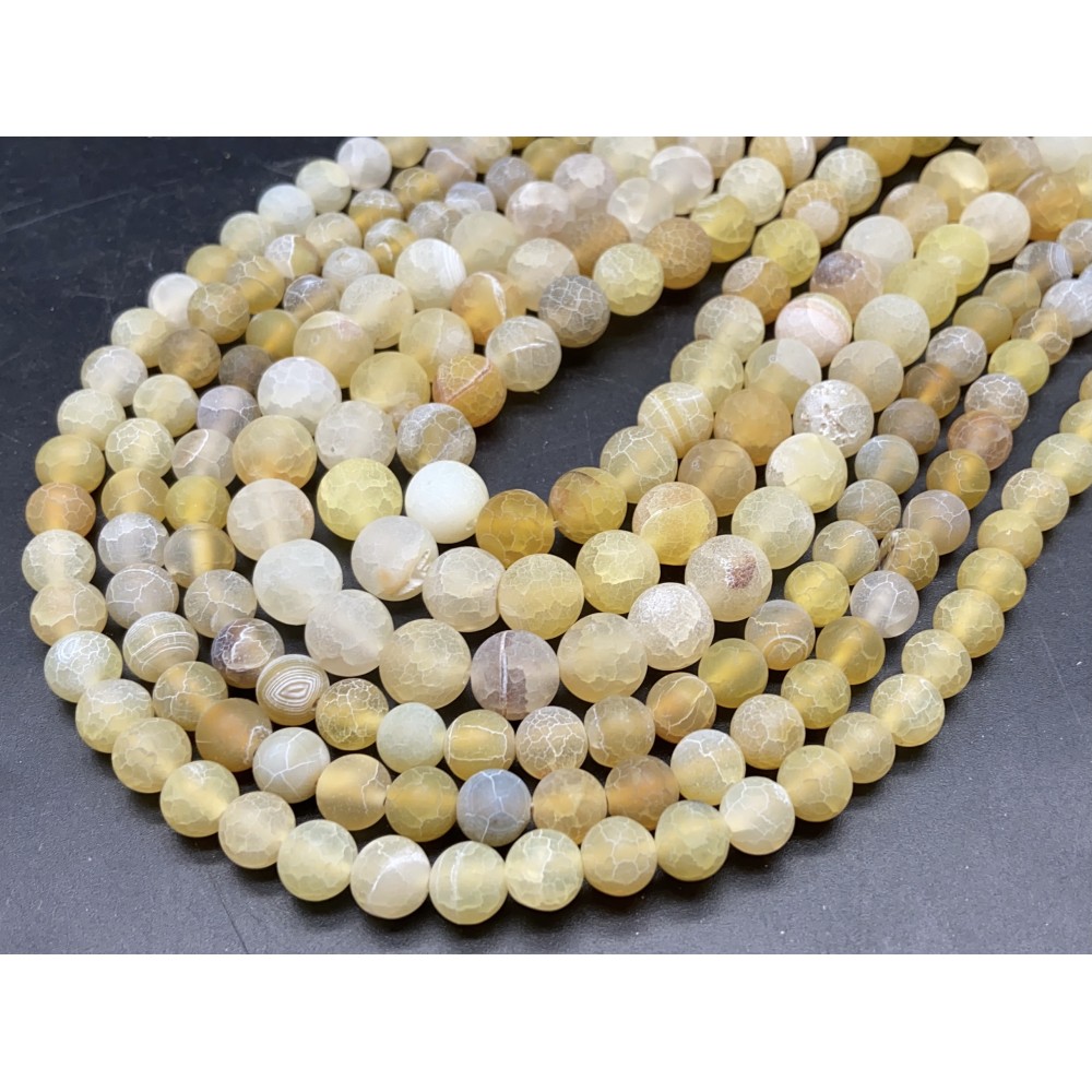 Каменные бусины, Африканский Агат, (Кракле), тонированный, бежево-желтый, шарик гладкий, 10 мм, нить 38 см