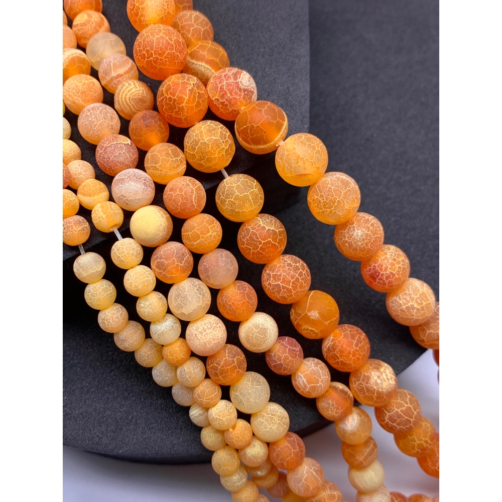 • Каменные бусины, Африканский Агат, (Кракле), тонированный, ярко-оранжевый, шарик гладкий, 10 мм, длина нити 38 см