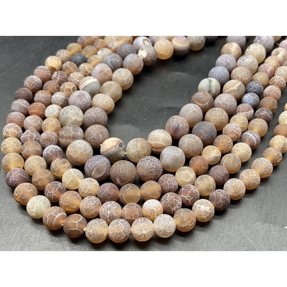• Каменные бусины, Африканский Агат, (Кракле), тонированный, коричневый, шарик, гладкий, 8 мм, длина нити 38 см