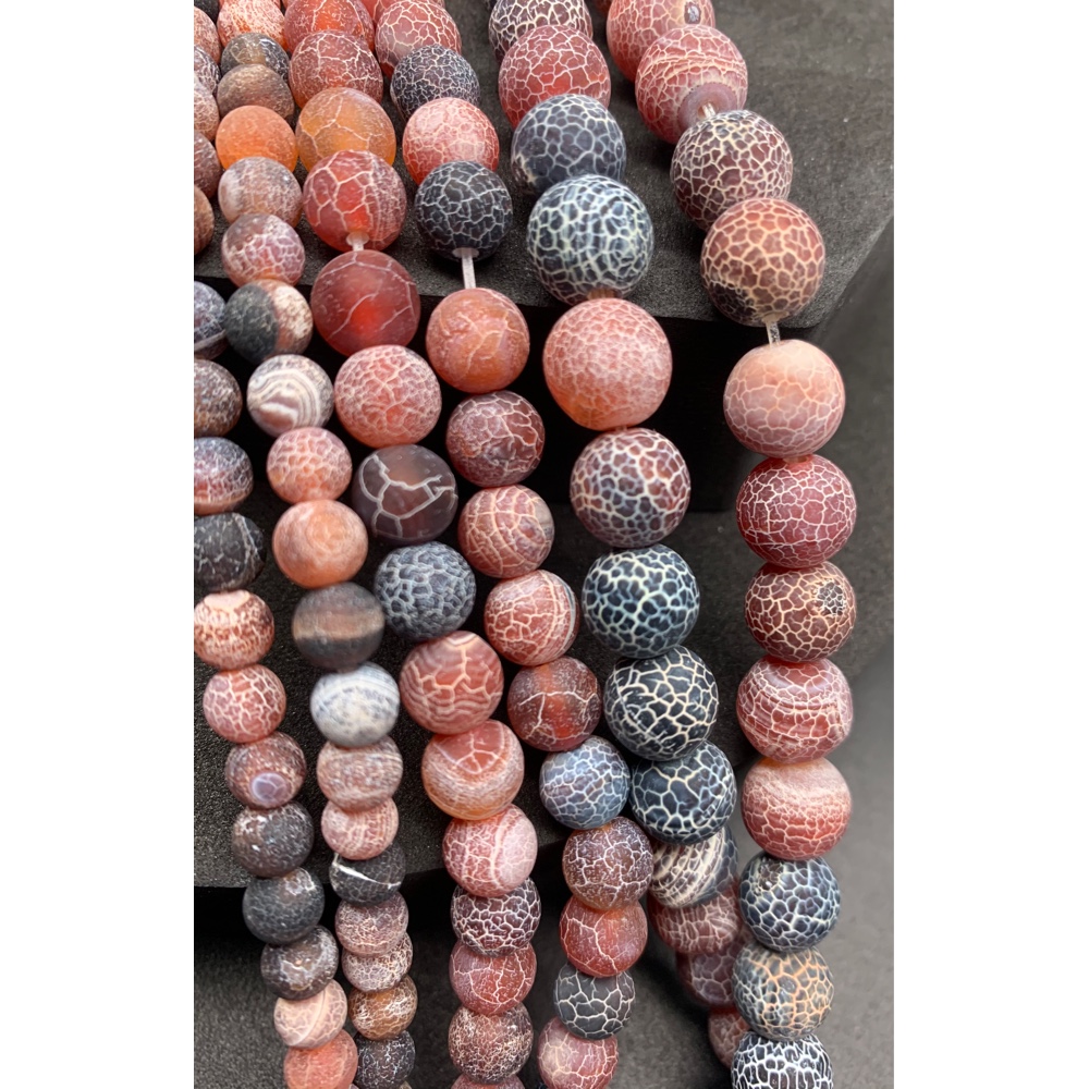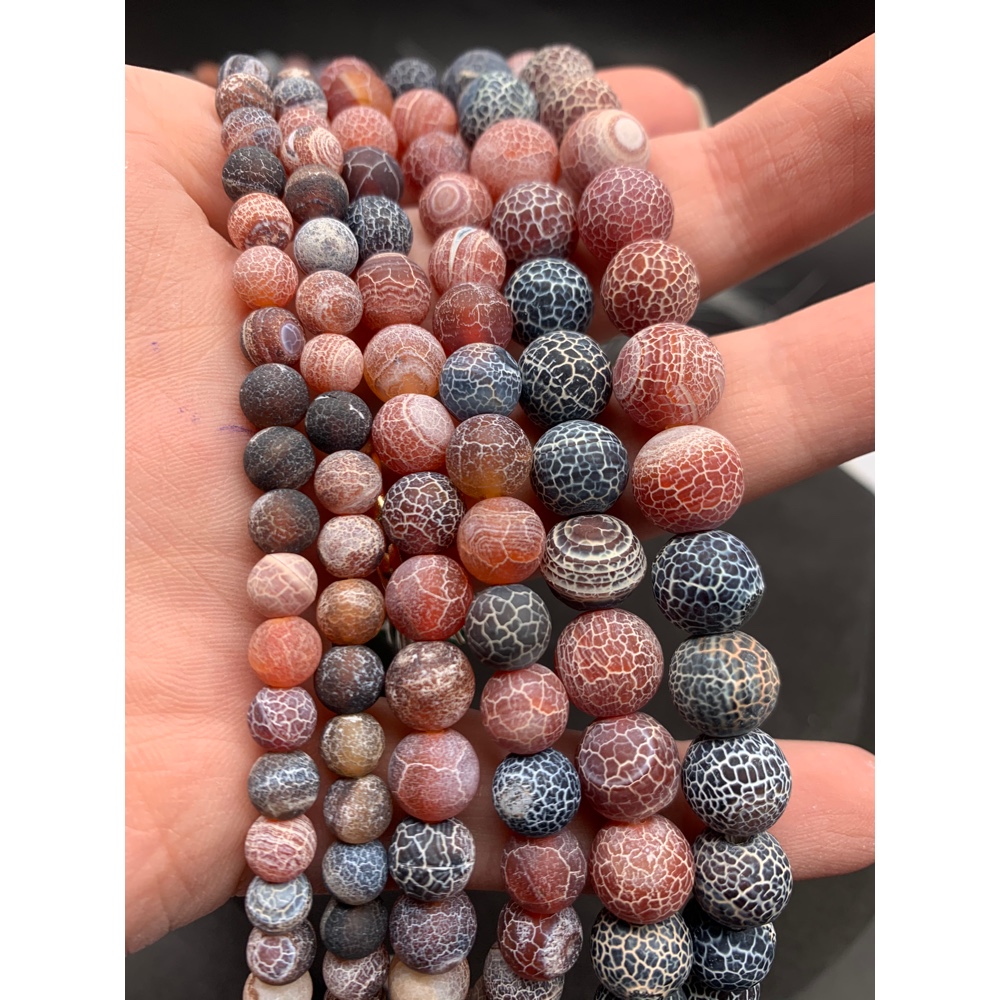 Каменные бусины, Африканский Агат, (Кракле), тонированный, серо- голубой, шарик гладкий, 8 мм, длина нити 38 см