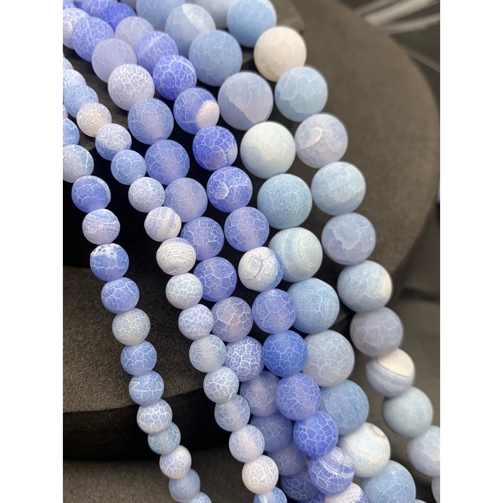 • Каменные бусины, Африканский Агат, (Кракле), тонированный, синий, шарик, гладкий, 8 мм, длина нити 38 см