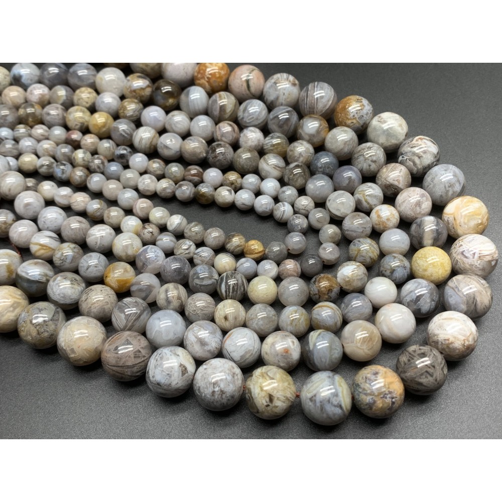 Каменные бусины, Агат Бамбуковый, шарик гладкий, 12 мм, длина нити 38-39 см