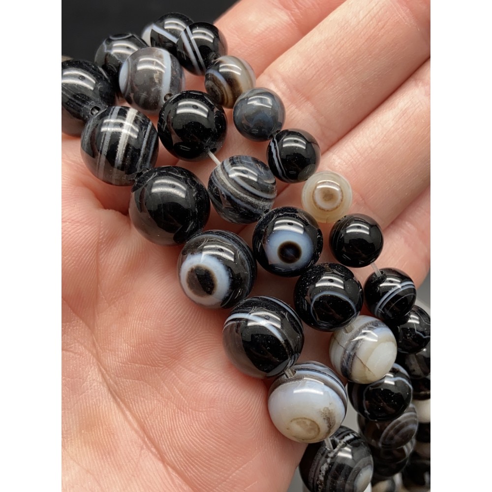 • Каменные бусины, Агат Чёрный Глазковый, шарик гладкий, 8 мм, длина нити 38 см