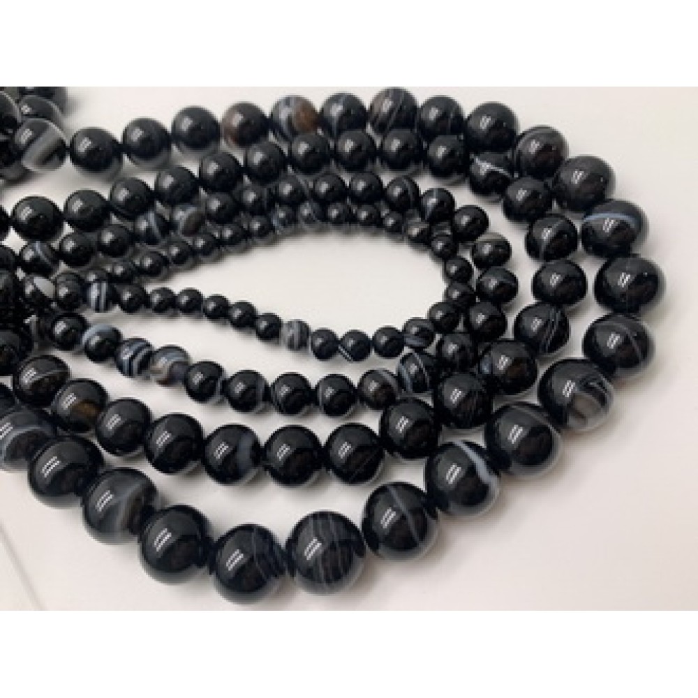 • Каменные бусины, Агат, чёрный, с полосками, шарик гладкий, 10 мм, длина нити 38 см