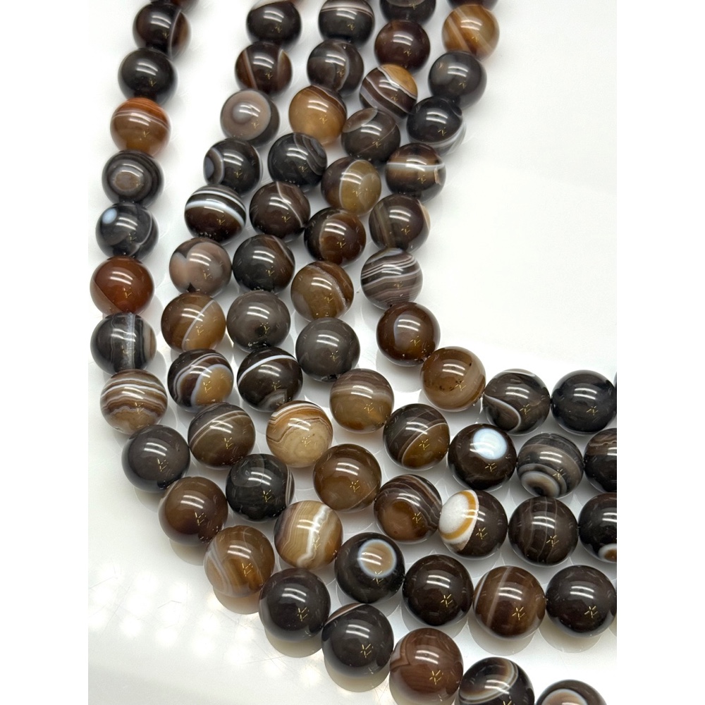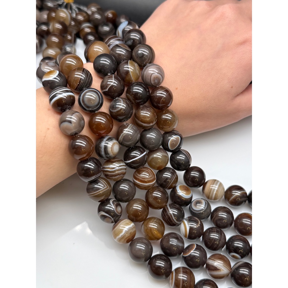 Каменные бусины, Агат, коричневый микс, шарик гладкий, 14 мм, длина нити 39 см