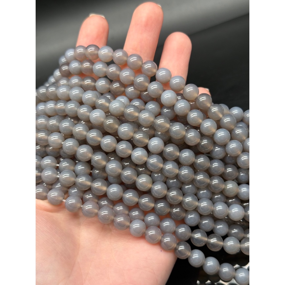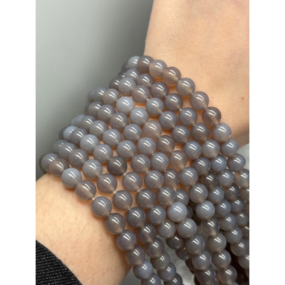 Каменные бусины, Агат, серый, натуральный цвет, шарик гладкий, 8 мм, длина нити 38 см