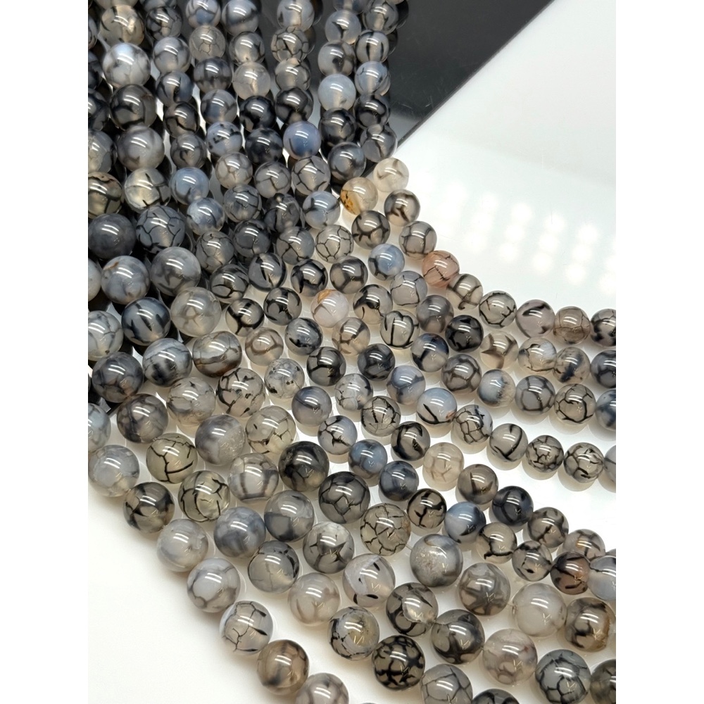 • Каменные бусины, Агат, серый, (вены дракона), кракле, тонированный, шарик гладкий, 10 мм, длина нити 38 см