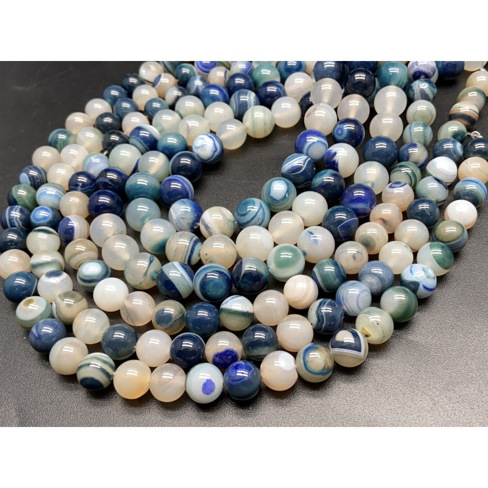 Каменные бусины, Агат, тонированный, бело-синий, шарик гладкий, 10 мм, длина нити 38 см