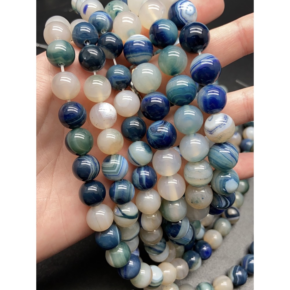 Каменные бусины, Агат, тонированный, бело-синий, шарик гладкий, 12 мм, длина нити 38 см