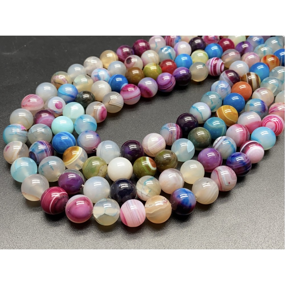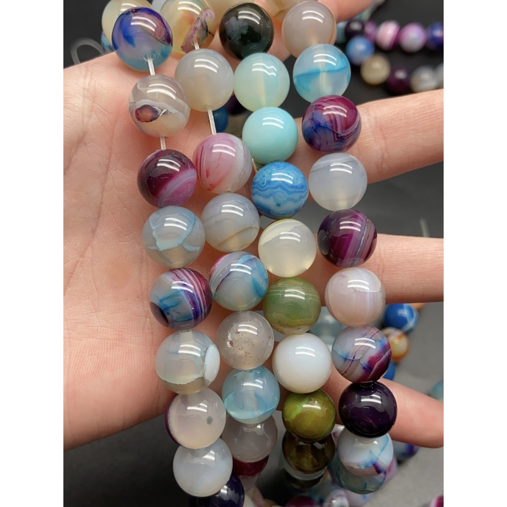 Каменные бусины, Агат, тонированный, светлый микс цветов, шарик гладкий, 12 мм, длина нити 38 см 0 312 ₽